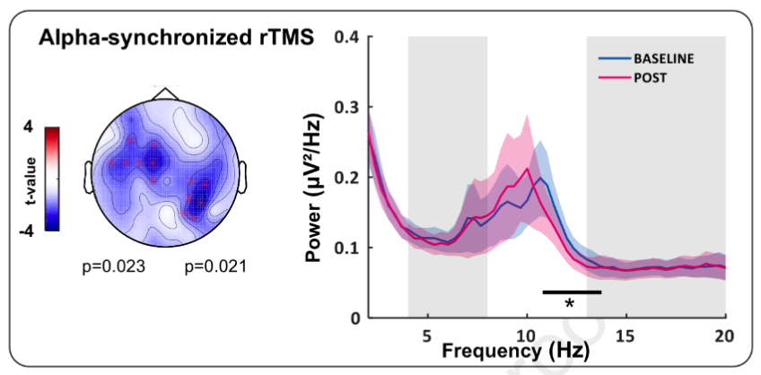 通過α同步rTMS調節靜息狀態腦電圖譜功率。