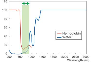 圖 1-2 水和血紅蛋白在近紅外波長(zhǎng)范圍的吸收率