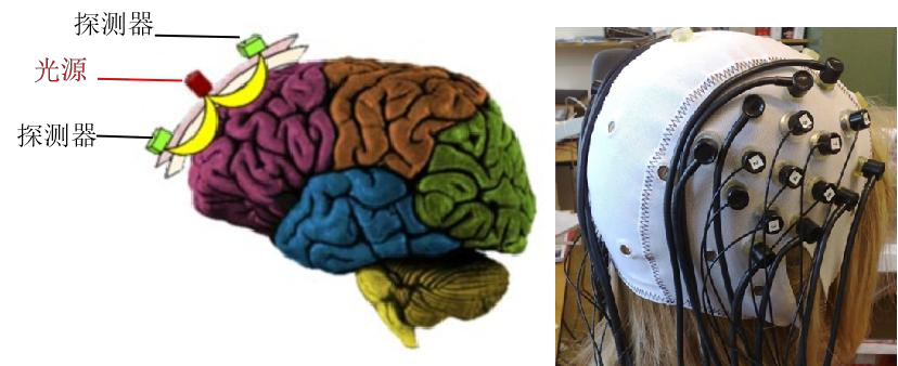 功能近紅外光譜成像技術(shù)(functional Near-Infrared Spectroscopy,fNIRS)主要利用多個(gè)波長(zhǎng)的近紅外光與腦組織中生色團(tuán)物質(zhì)之間的吸收和散射關(guān)系,考察特定狀態(tài)下腦組織中氧合血紅蛋白、脫氧血紅蛋白以及總血紅蛋白的濃度變化,進(jìn)而間接考察神經(jīng)元的活動(dòng)、細(xì)胞能量代謝以及血液動(dòng)力學(xué)相關(guān)的功能,反映大腦的狀態(tài)與加工的過(guò)程。