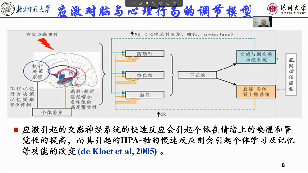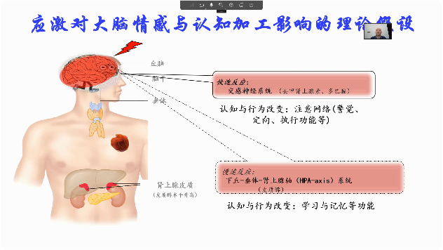 應(yīng)激引起的交感神經(jīng)系統(tǒng)的快速反應(yīng)會引起個體在情緒上的喚醒和警覺性的提高,進而引起HPA-軸的慢速反應(yīng),則會引起個體學(xué)習(xí)及記憶等功能的改變。