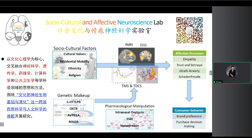 我們課題組叫社會(huì)文化與情感神經(jīng)科學(xué)實(shí)驗(yàn)室,主要是圍繞文化心理學(xué)的一些研究主題開(kāi)展研究。不但會(huì)使用心理學(xué)的傳統(tǒng)研究方法,而且還會(huì)交叉融合到神經(jīng)科學(xué)、遺傳學(xué)、藥理學(xué)、計(jì)算科學(xué)及公共衛(wèi)生學(xué)的一些理論以及方法,來(lái)開(kāi)展這種交叉科學(xué)的研究工作。