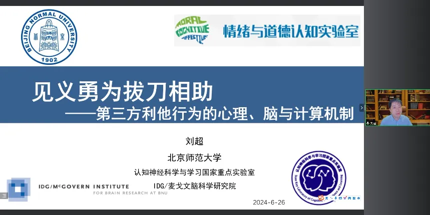 2024年6月26日晚20點,北京師范大學心理學部博士生導師劉超教授作為腦客中國科研第148位講者為大家帶來主題為《見義勇為與救死扶傷:第三方利他行為的心理、腦與計算機制》的報告。以下內容節選自直播視頻: