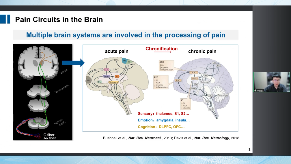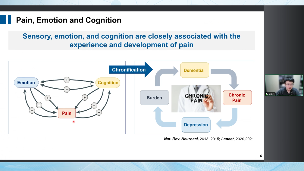 在我們自己的這個研究當(dāng)中,會發(fā)現(xiàn)其實(shí)疼痛的感覺、情緒和認(rèn)知三個維度是密不可分的,它們相互影響共同形成了一個非常復(fù)雜的生理現(xiàn)象。