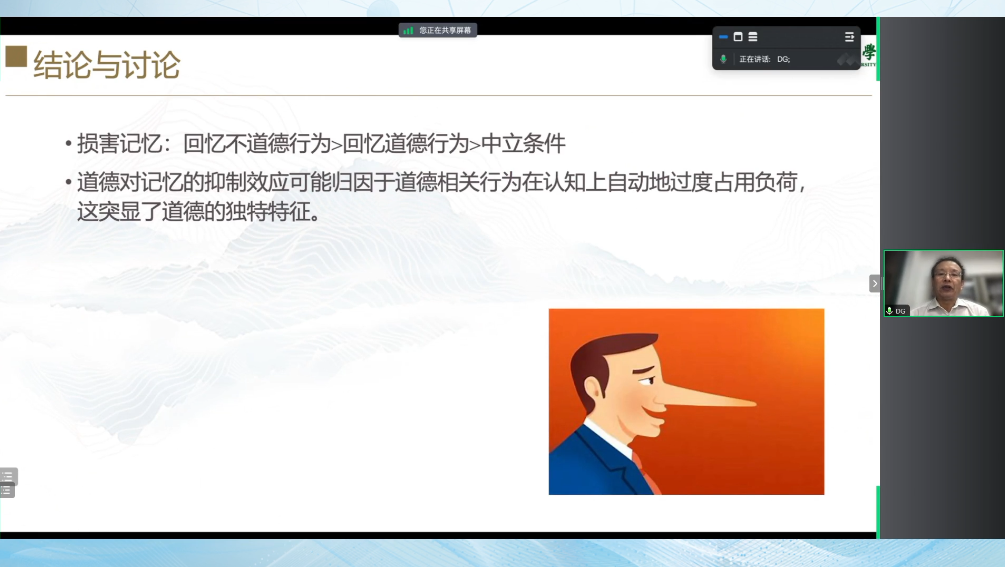 總體而言,對記憶的損害,回憶不道德行為>回憶道德行為>中立條件。道德對記憶的抑制效應可能歸因于到的相關行為在認知上自動地過度占用認知負荷。這也是道德的獨特特征。