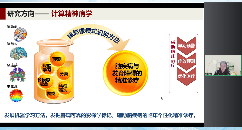 大家晚上好,很榮幸受到腦客中國的邀請,來給大家介紹一下我們團隊相關的工作。我來自北京師范大學認知神經科學與學習國家重點實驗室,研究背景是計算精神病學,我們是希望能夠把一些AI、機器學習等腦影像模式識別方法應用到我們的多模態磁共振影像中,來實現精神疾病以及腦發育障礙的一些精準診療。我們希望通過客觀的影像學標記能夠幫助我們做到早期預警,療效預測和相關的優化治療。