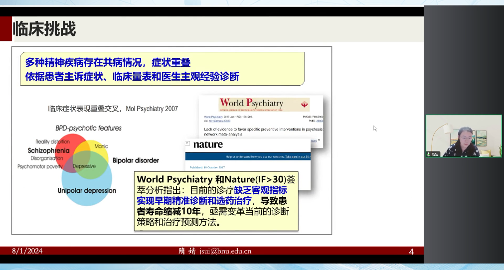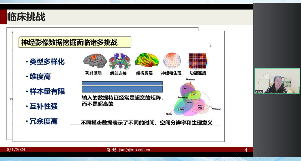 2024年8月1日晚20點,北京師范大學認知神經科學與學習國家重點實驗室課題組長隋婧教授作為腦客中國科研第153位講者為大家帶來主題為《多模態磁共振影像融合計算方法及其在神經精神疾病的臨床應用》的報告。以下內容節選自直播視頻: