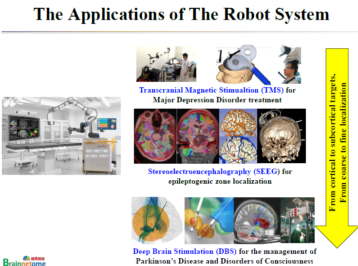 所以我們希望能夠建造一個手術機器人,手術規劃好以后由機器人去放置電極。腦網絡組圖譜導航的手術機器人(Brain netome Atlas Guided Neurosurgical Robot)。第一款機器人馬上就要出來了。