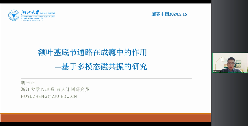 2024年5月15日晚20點,浙江大學百人計劃研究員,博士生導師胡玉正教授作為腦客中國科研第142位講者為大家?guī)碇黝}為《額葉基底節(jié)通路在成癮中的作用--基于多模態(tài)磁共振的研究》的報告。以下內(nèi)容節(jié)選自直播視頻: